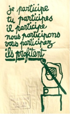 The focus of this year’s iteration of the workshop “you participate, they profit: collective action, power and urban change” takes its title from the famous poster produced by French art students during the uprisings of 1968. Its history speaks eloquently to long-standing debates about power, participation and urban political struggles.